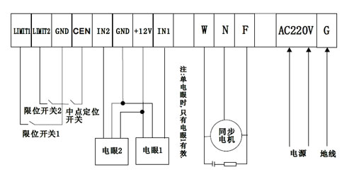 (一)外部接線,連接電源、電機(jī)電源線、限位開關(guān)線,按顏色和編號(hào)對號(hào)接線。