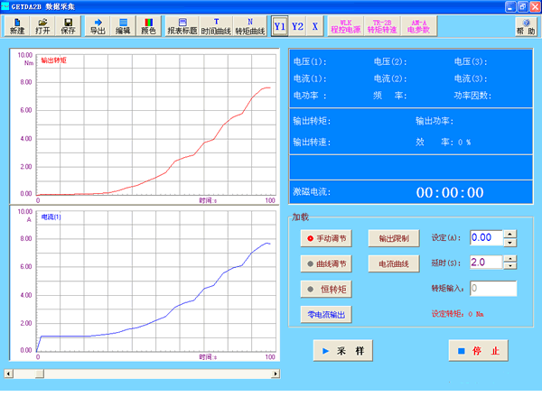 - 所有儀器通過RS485總線與電腦連接,實現(xiàn)對電機的自動加載以及對數(shù)據(jù)的集中采集。實時顯示各參數(shù)與時間之間的關系曲線,以記錄整過測試過程。